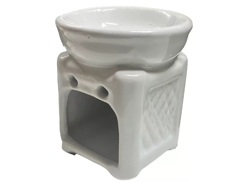 Kerámia olajmécses rácsos mintával - Törtfehér