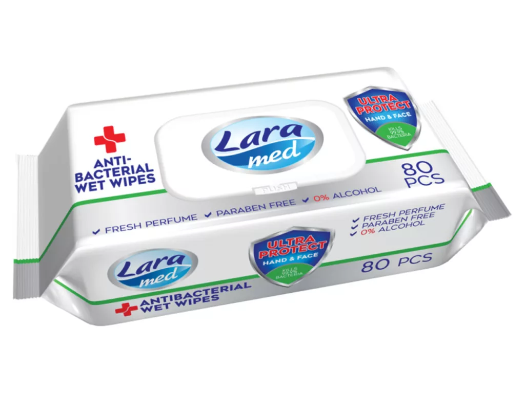 Lara Med Antibakteriális Nedves Törlőkendő – 80 db – tiszta kéz, friss érzet, bárhol és bármikor!