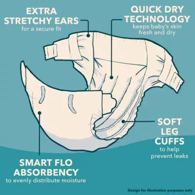 Adja rá a pelenkát a tiszta, száraz bőrre, majd igazítsa a baba testéhez. Rendszeresen ellenőrizze és szükség szerint cserélje.