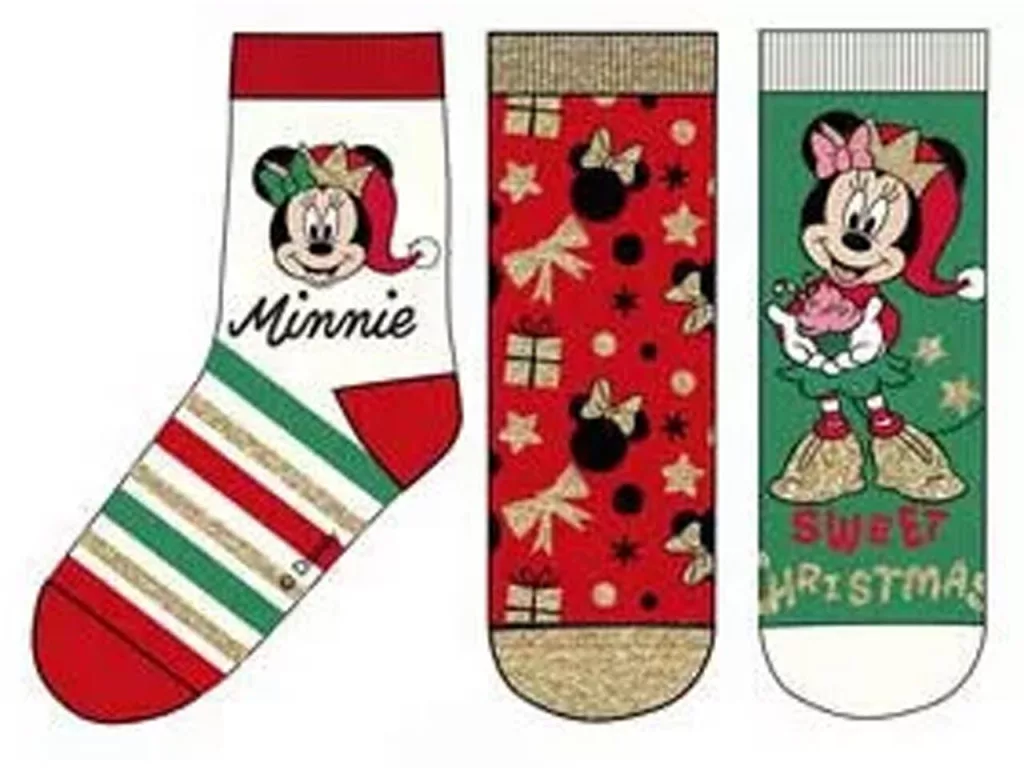 Mickey és Minnie karácsonyi gyerek zokni 3 pár/csomag - Fehér csíkos, Piros mintás, Zöld - 23-26