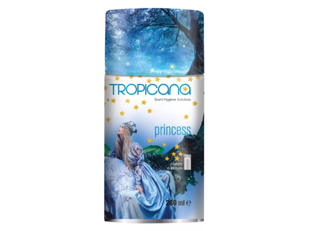 Tropicana Princess automata légfrissítő utántöltő varázslatos, mesés illatvilágával frissíti fel a levegőt és hatékonyan semlegesíti a kellemetlen szagokat. A Princess illat lágy, nőies és elegáns aromát áraszt, amely harmonikus, megnyugtató hangulatot teremt a mindennapokban. A Tropicana légfrissítők illatai nemcsak frissítenek, hanem pozitívan hatnak a közérzetre is – egy kellemes illat segít ellazulni és otthonosabbá teszi a teret.